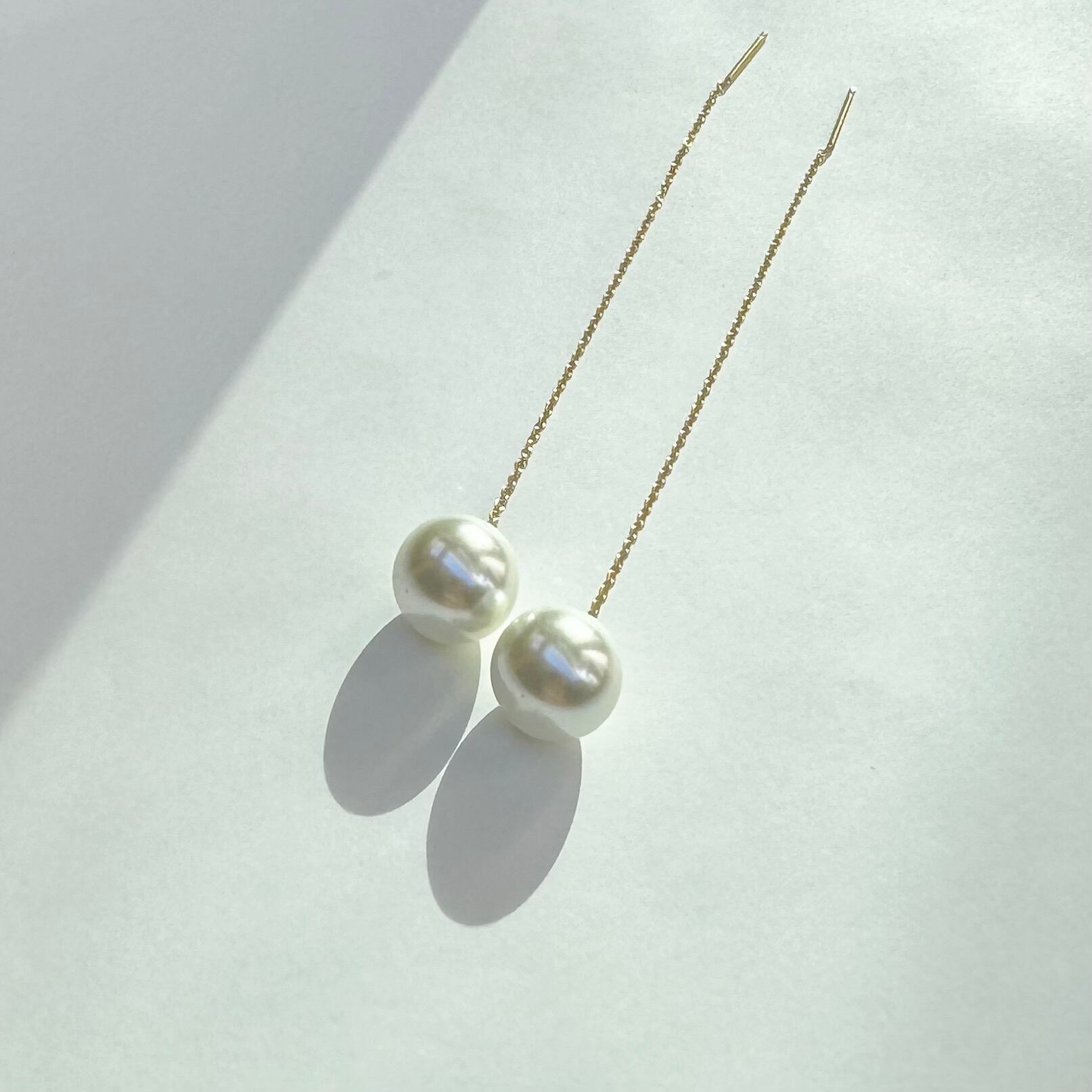 一粒のパールから連なるチェーンが品のある印象を与え、特別な日やオフィススタイルにもぴったりです。軽量でつけ心地も快適なので、長時間つけていても負担を感じません。2パターンの着け方を楽しんで。