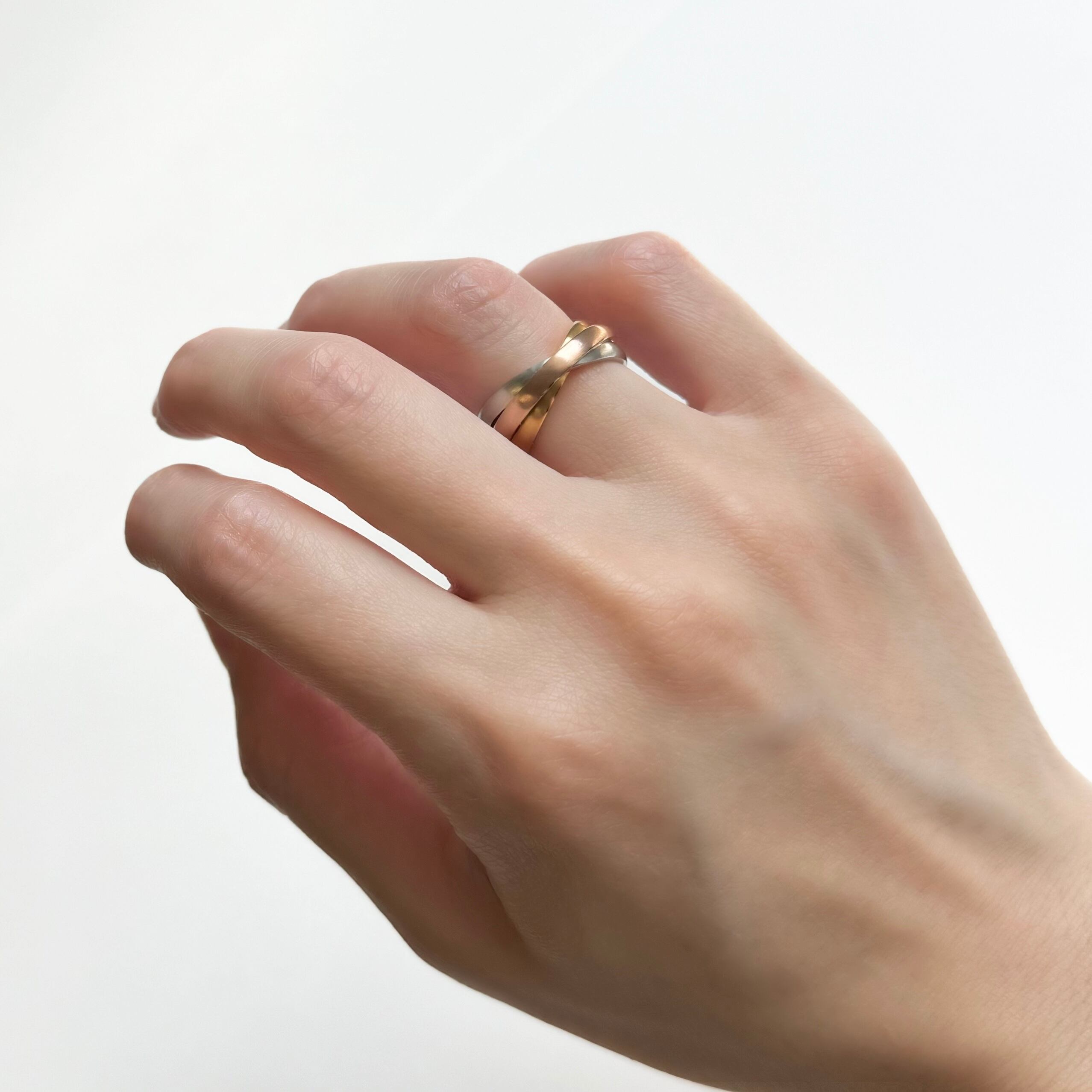 つや消し(サティーナ加工)を施した3連タイプのリング。