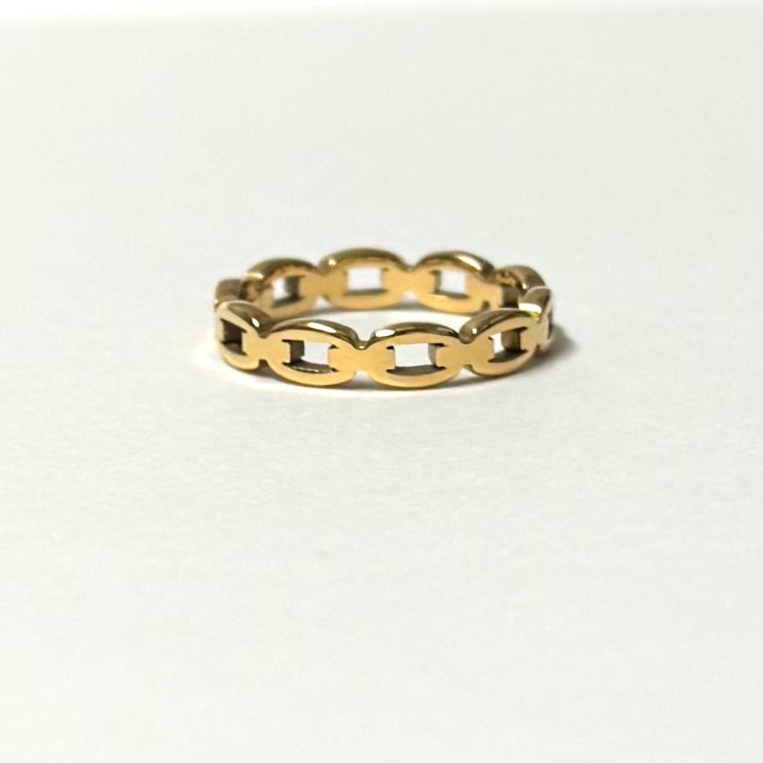 透かしのオーバル型が連なったリングで、